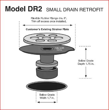 The Dranjer DR2 is designed to fit seamlessly into 2-inch floor drains, providing a simple and effective retrofit solution for preventing radon gas, soil gas, insects, and odors from entering your living space.